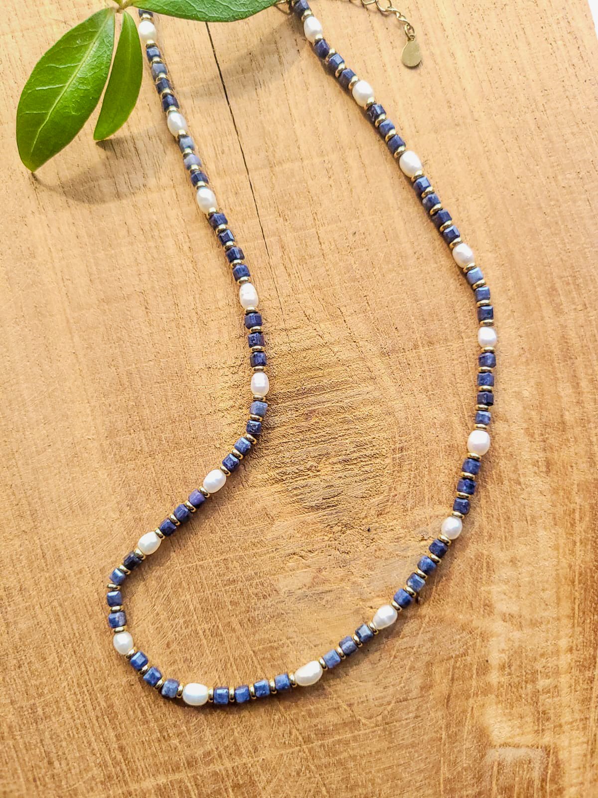 Szafir od wieków symbolizuje mądrość, spokój i lojalność, natomiast perły kojarzone są z harmonią i naturalną elegancją. Wierzy się, że ich połączenie sprzyja wewnętrznej równowadze oraz podkreśla siłę i autentyczność.