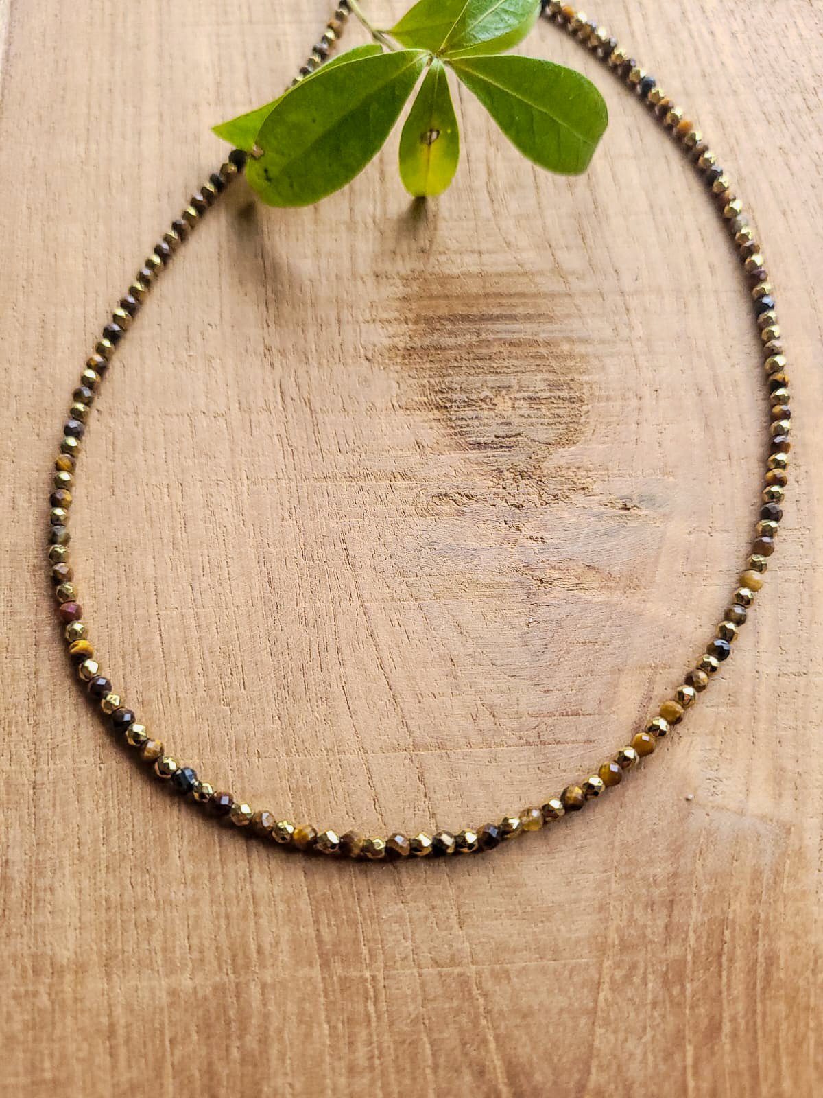 Tygrysie oko symbolizuje odwagę, ochronę i pewność siebie, natomiast hematyt od wieków uznawany jest za kamień stabilności i uziemienia. Wierzy się, że ich połączenie wspiera wewnętrzną równowagę, dodaje siły w trudnych sytuacjach i pomaga zachować spokój.