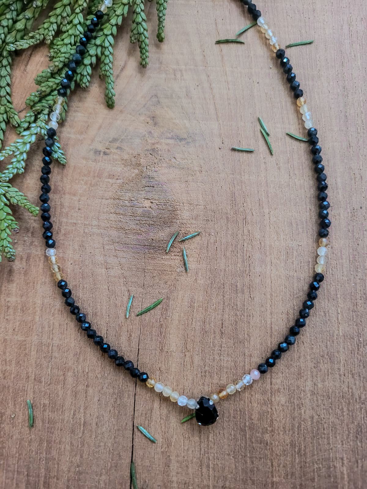 Połączenie turmalinu i cytrynu tworzy wyjątkową harmonię ochrony i radości. Turmalin znany jest ze swoich właściwości oczyszczających – pomaga odcinać negatywną energię, wzmacnia poczucie bezpieczeństwa i wspiera wewnętrzną równowagę.