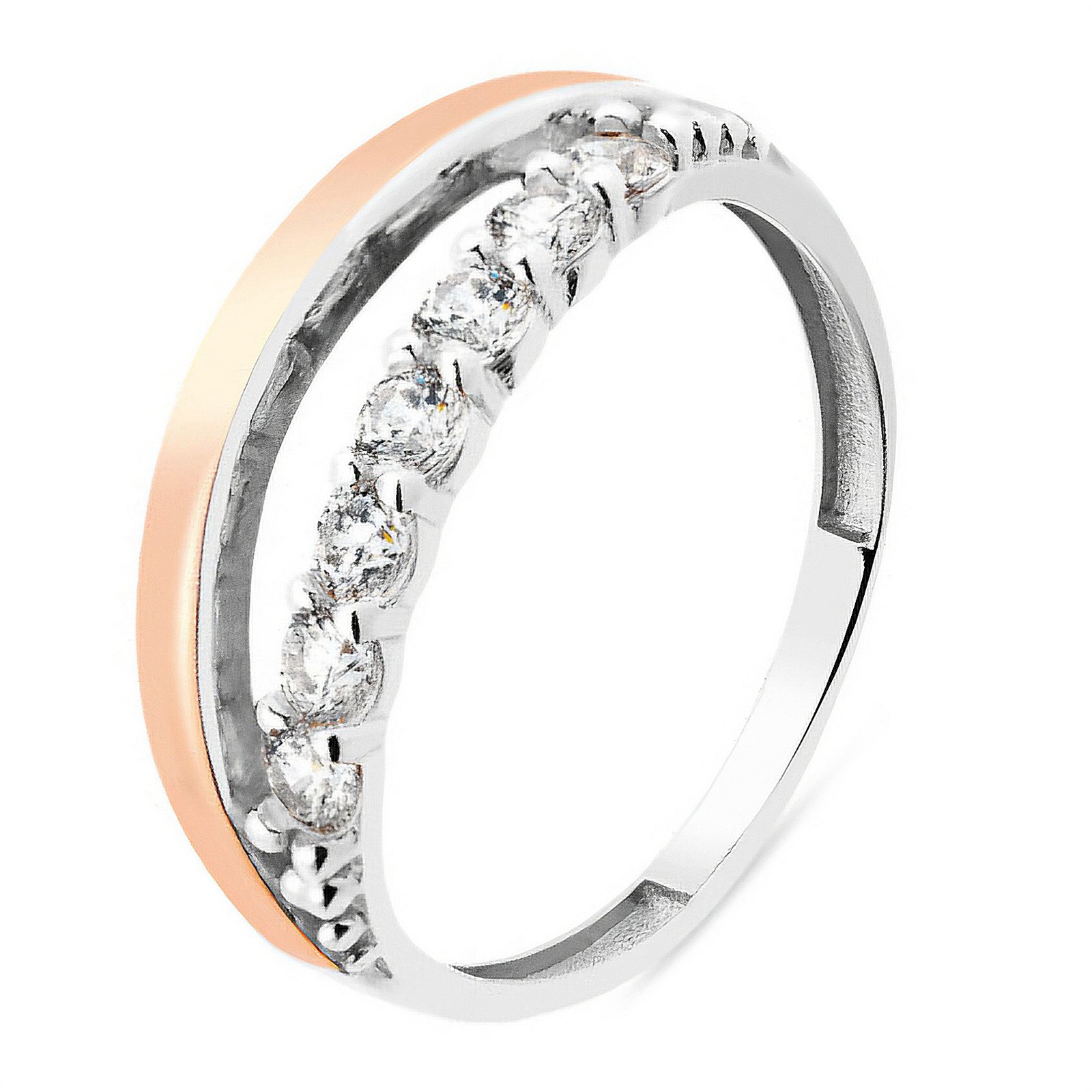 Pierścionek ze złotem i cyrkoniami, srebro 925 próby, 9-karatowe złoto