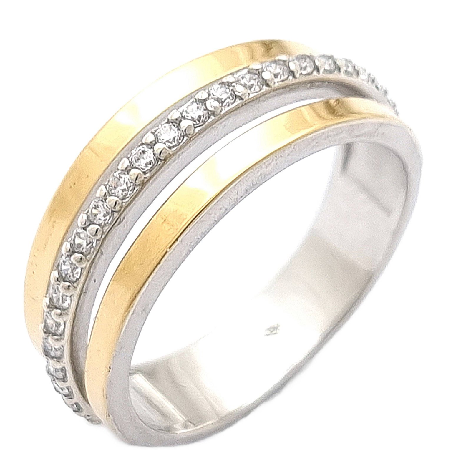 Pierścionek ze złotem i cyrkoniami, srebro 925 próby, 9-karatowe złoto
