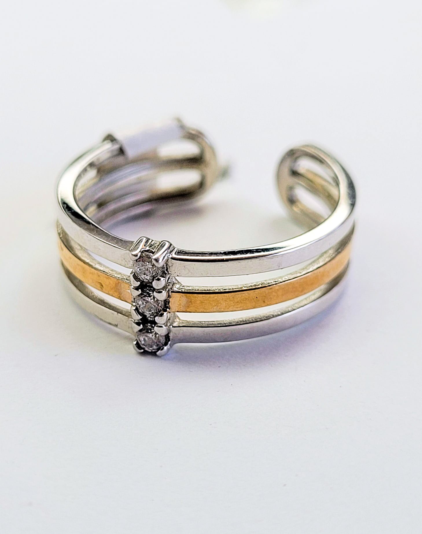 Pierścionek ze złotem i cyrkoniami, srebro 925 próby, 9-karatowe złoto
