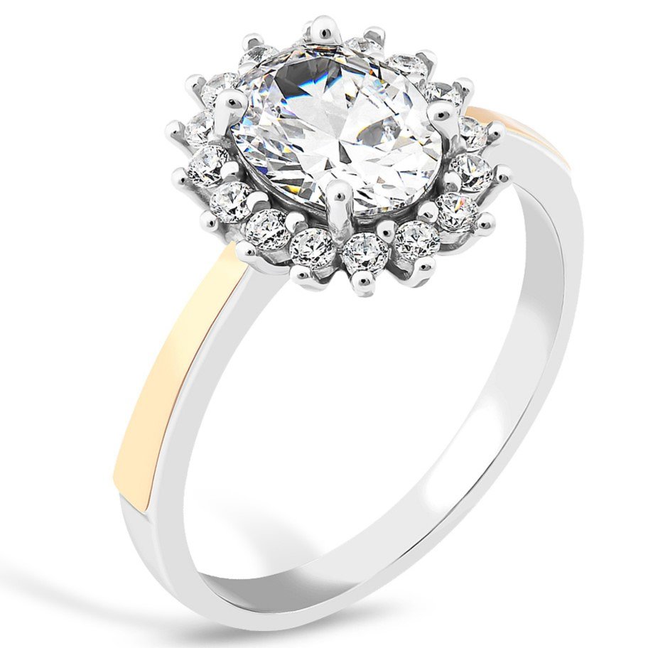 Pierścionek ze złotem i cyrkoniami, srebro 925 próby, 9-karatowe złoto