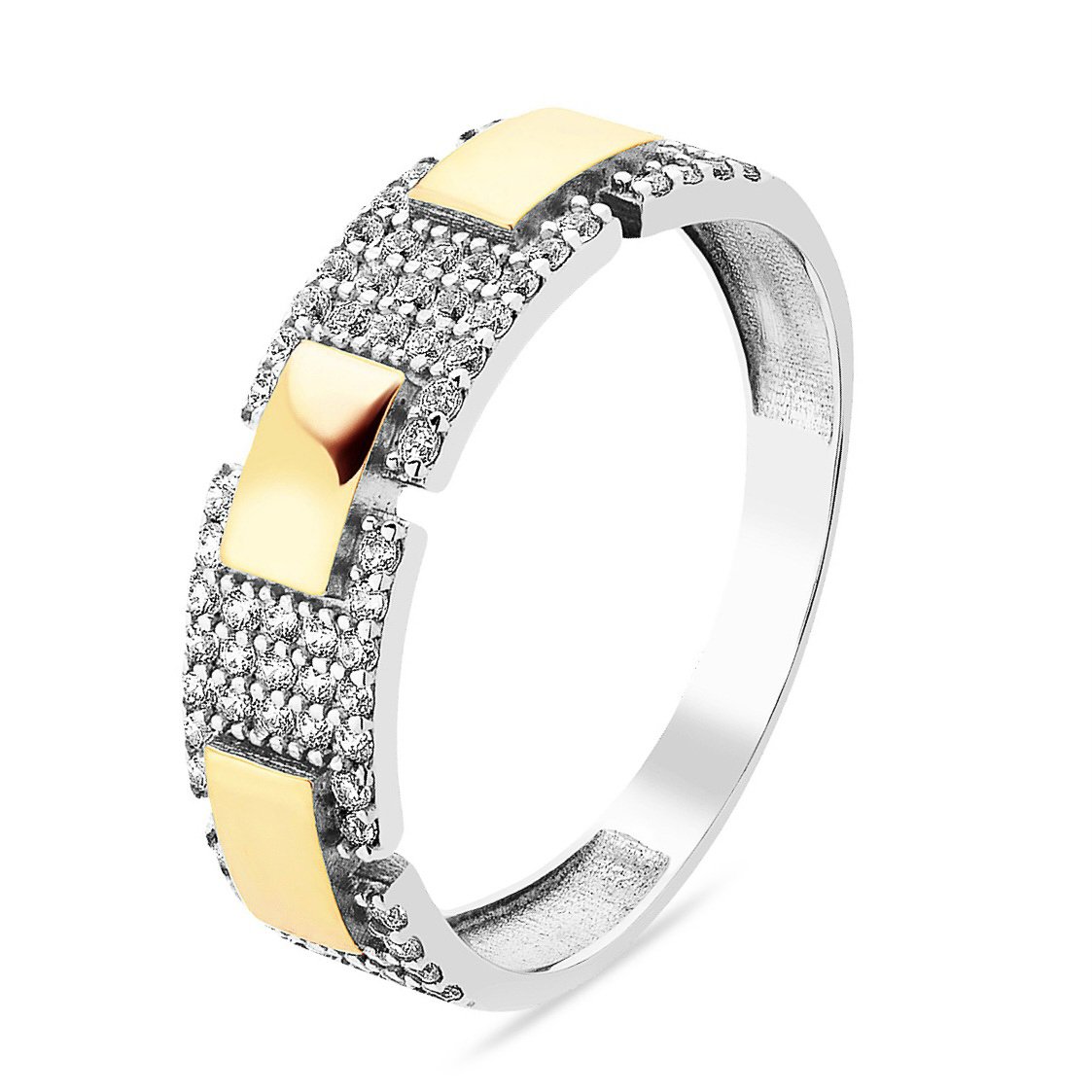 Pierścionek ze złotem i cyrkoniami, srebro 925 próby, 9-karatowe złoto